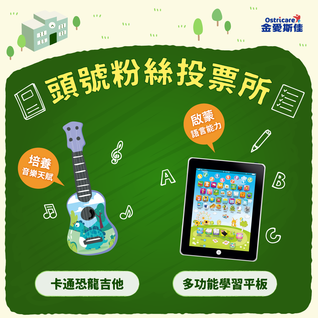 寵愛鐵粉禮PK:「卡通恐龍吉他」vs「多功能學習平板」 快來投票選擇心目中的第一名,抽中金愛好禮送給你!!