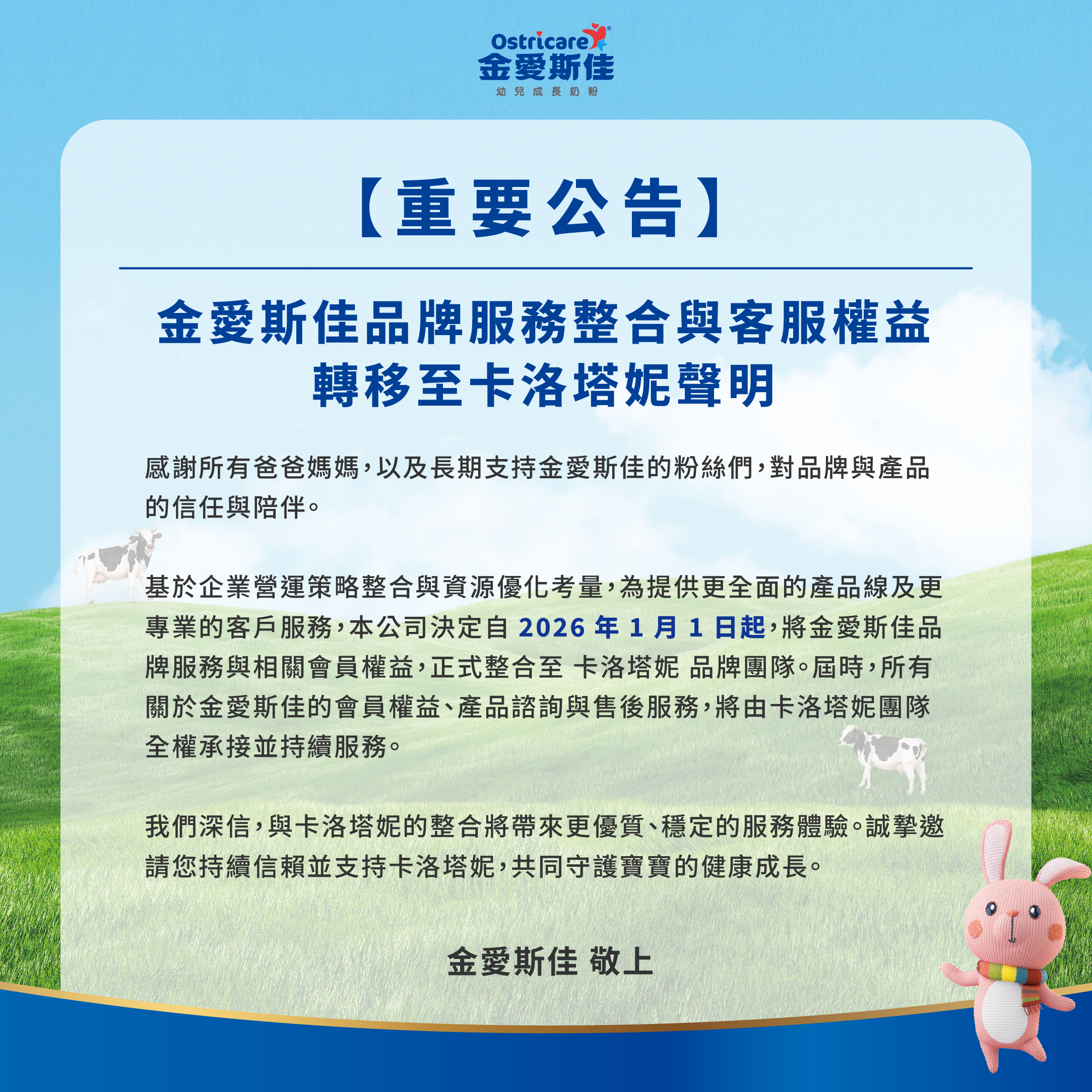 【重要公告】金愛斯佳品牌服務整合與客服權益轉移至卡洛塔妮聲明