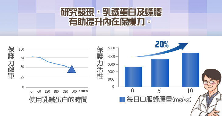 2.乳鐵蛋白與蜂膠助提升內在保護力: